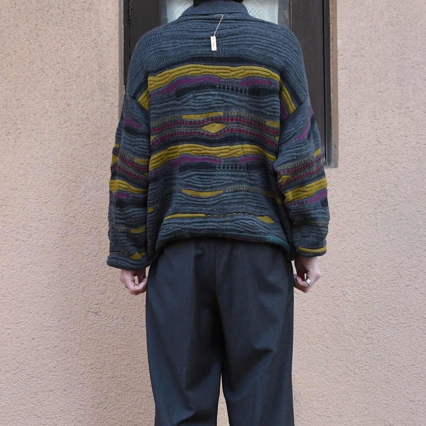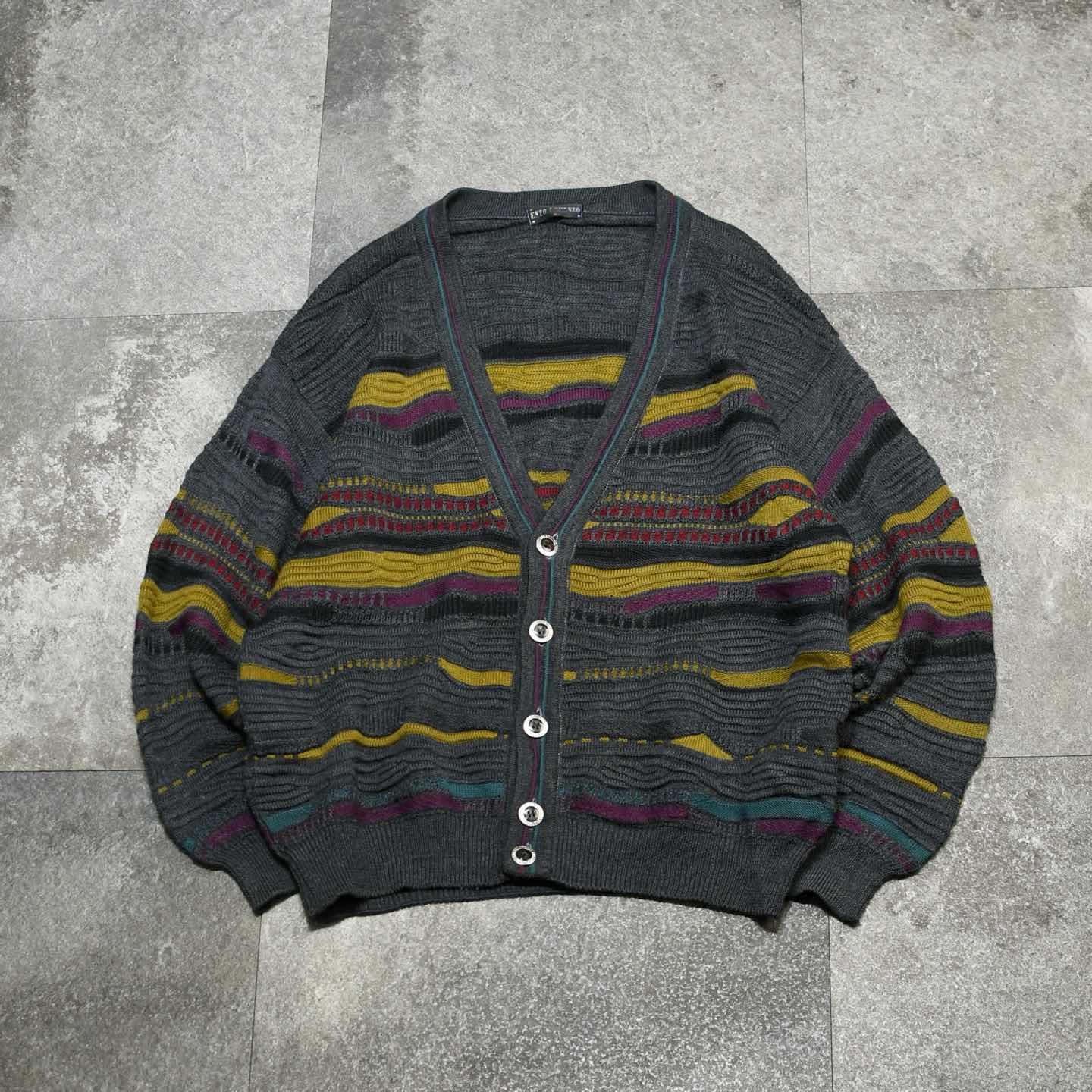 古着 3D カーディガン デザインカーディガン ニット セーター グレー