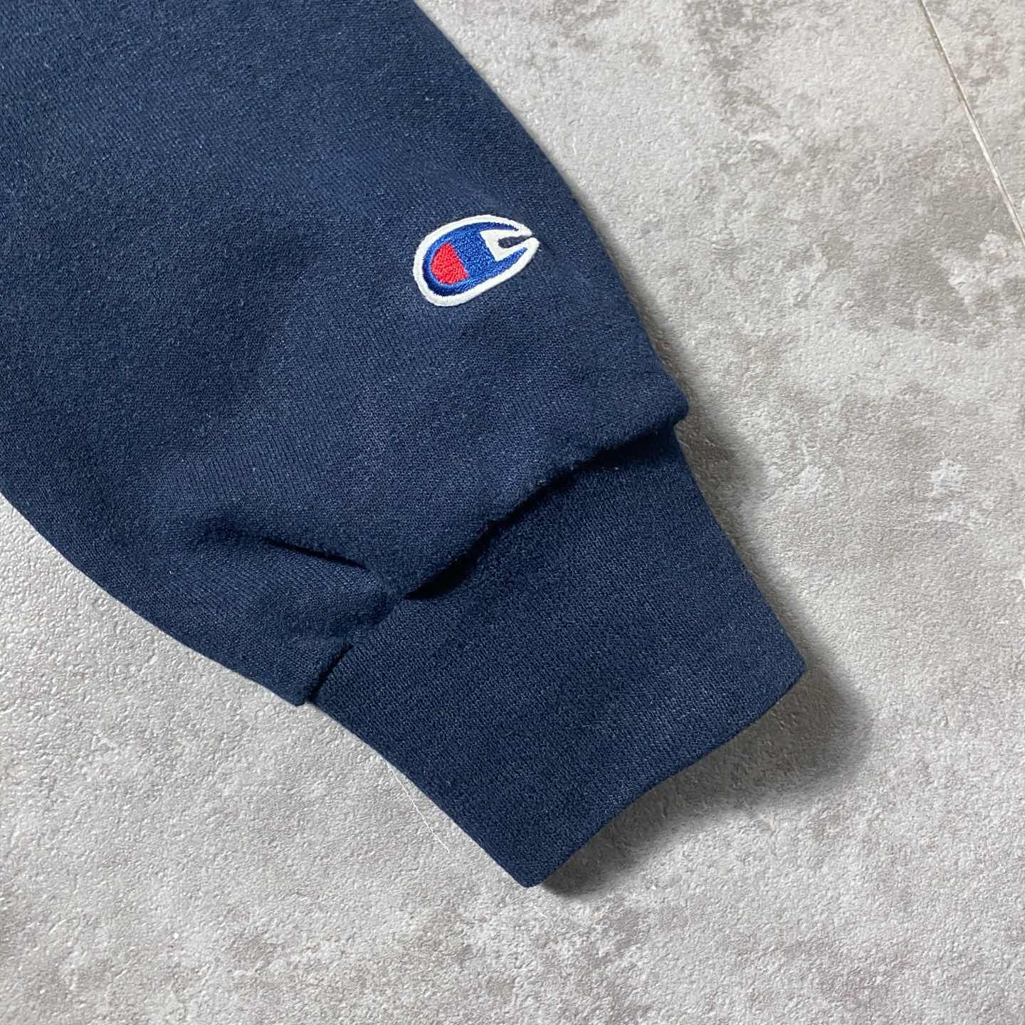 90s チャンピオン 刺繍ロゴ ラインリブ ネイビー ナイロンプルオーバー
