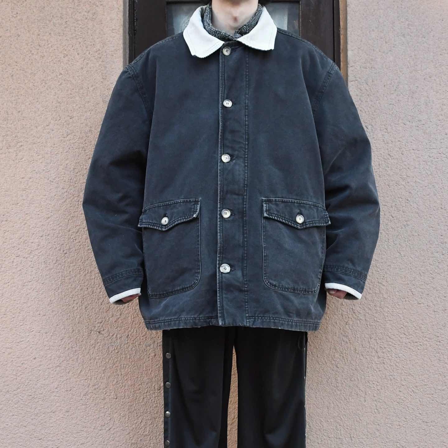 古着 フェード ダックジャケット カバーオール 襟 コーデュロイ キルティング