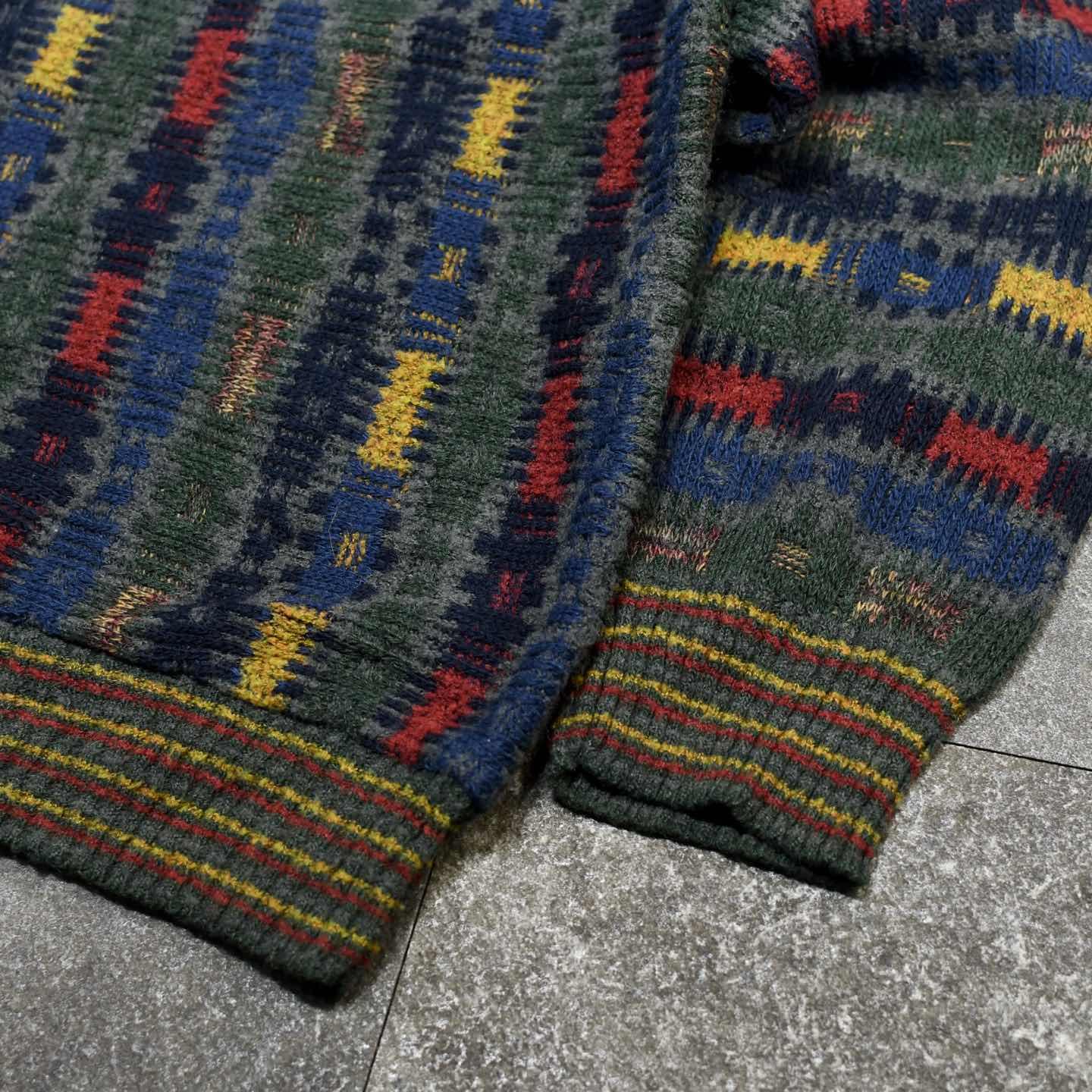 SIZE:XL 着丈80cm 肩幅61cm 身幅62cm 袖丈61cm fabric/acryl・wool・nylon made in Italy 着用画像 173cm/56kg 色とりどりなデザインニット。 多色を用いているにも拘わらず、ベースのカラーが 落ち着いている為か、袖を通すとすっとコーデに 馴染む1着でした。 さらに着丈が長く採られているからこそ、 腰元でしっかりと溜まる丸みのあるシルエットも 良さのひとつ。 上品なコートのインナーとして、程よく鮮やかさを 纏ってくれるのではないでしょうか。 ※撮影状況により、実物と多少色が異なる場合が ございます。 ※古着を取り扱っているため、気づかない汚れや ほつれ等がある場合がございます。 ※サイズは着用感で選んでおり、 表記サイズは説明欄の最初に記載しております。 オーバーサイズ old vintage ヴィンテージ used 80's 90's アメリカ古着 ユーロ古着 POLO RALPH LAUREN Eddie Bauer OLD GAP LANDS' END ランズエンド LLBean エルエルビーン オールドギャップ エディーバウアー ラルフローレン ブルックスブラザーズ Brooks Brothers ネイビー 紺色 ウールニット などがお好きな方 #vintage #オーバーサイズ #old #used #90s #80s #古着 #ヴィンテージ #アメリカ古着 #ユーロ古着 #LLBean #エルエルビーン #EddieBauer #エディーバウアー #oldgap #オールドギャップ #LANDSEND #ランズエンド #NAUTICA #ノーティカ #ラルフローレン #POLORALPHLAUREN #ブルックスブラザーズ #BrooksBrothers #ウールニット #アクリルニット #ニット #セーター #デザインニット