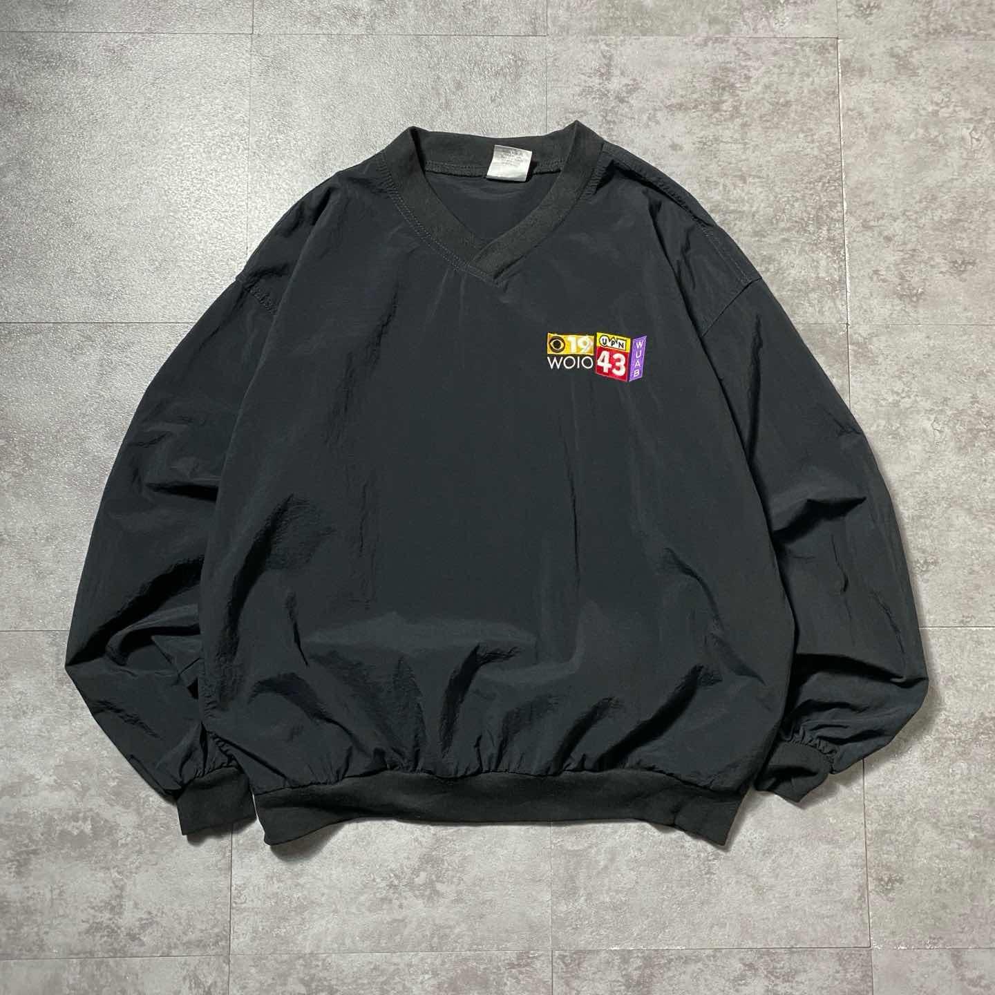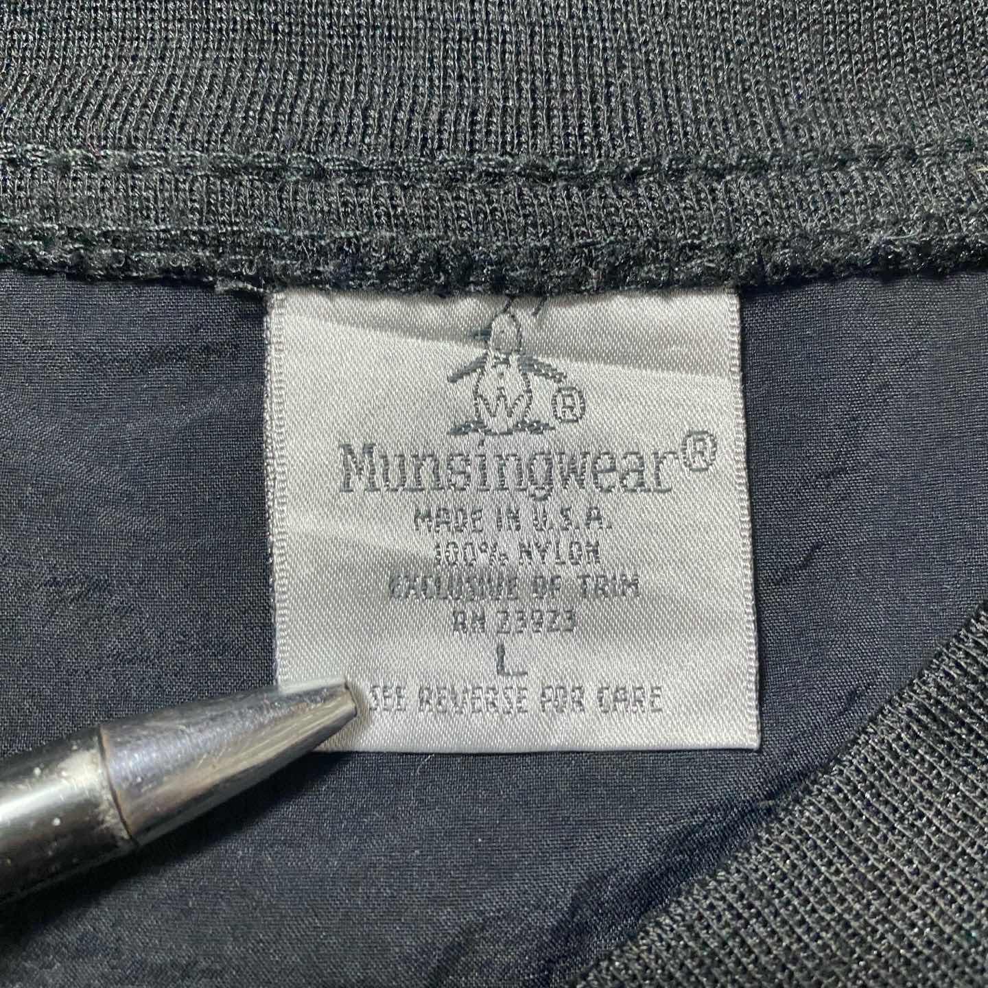 【USA製】90s マンシングウェア 刺繍企業ロゴ 黒 ナイロンプルオーバー