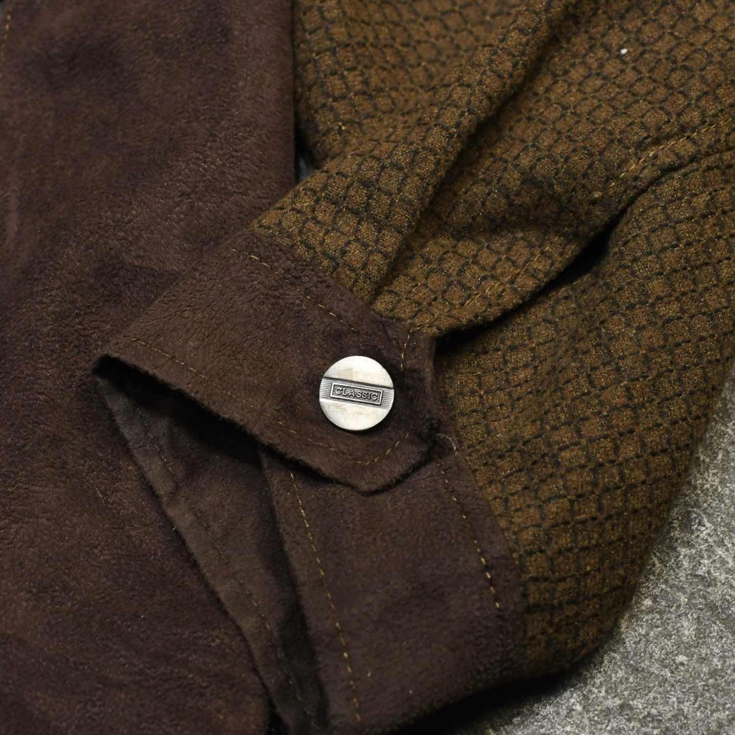 古着 レイヤード ベロア テーラードジャケット 裏地サーマル フーディ ブラウン