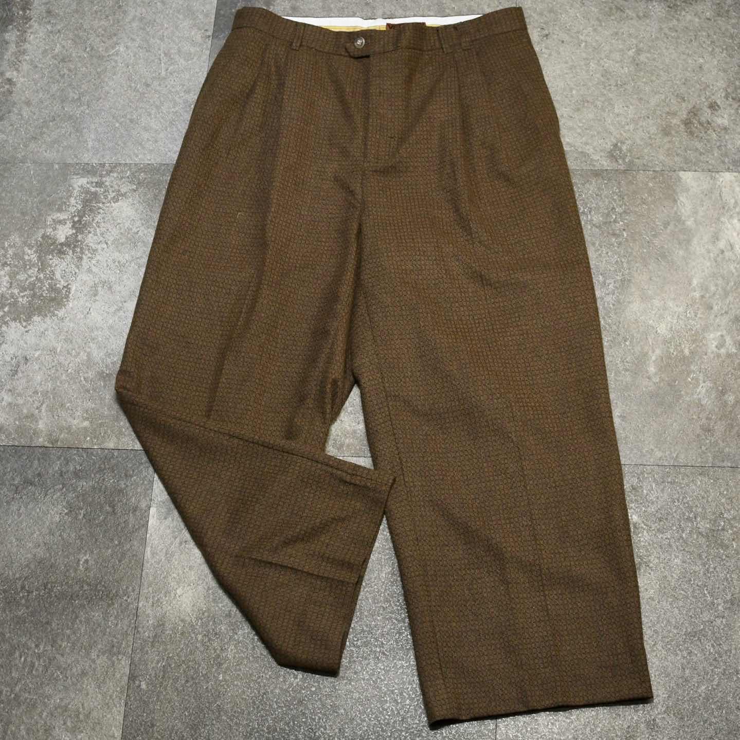 古着 ツイード ネップ タックパンツ スラックス ウールパンツ ブラウン 茶色