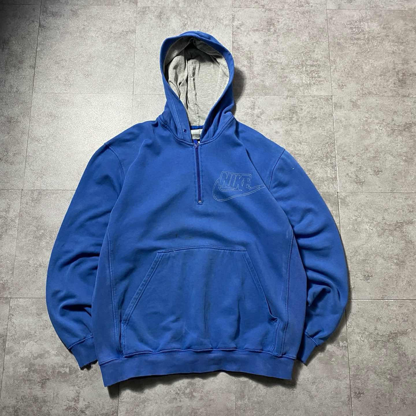 00's ナイキ スウォッシュ 刺繍ロゴ ハーフジップ グッドダメージ パーカー