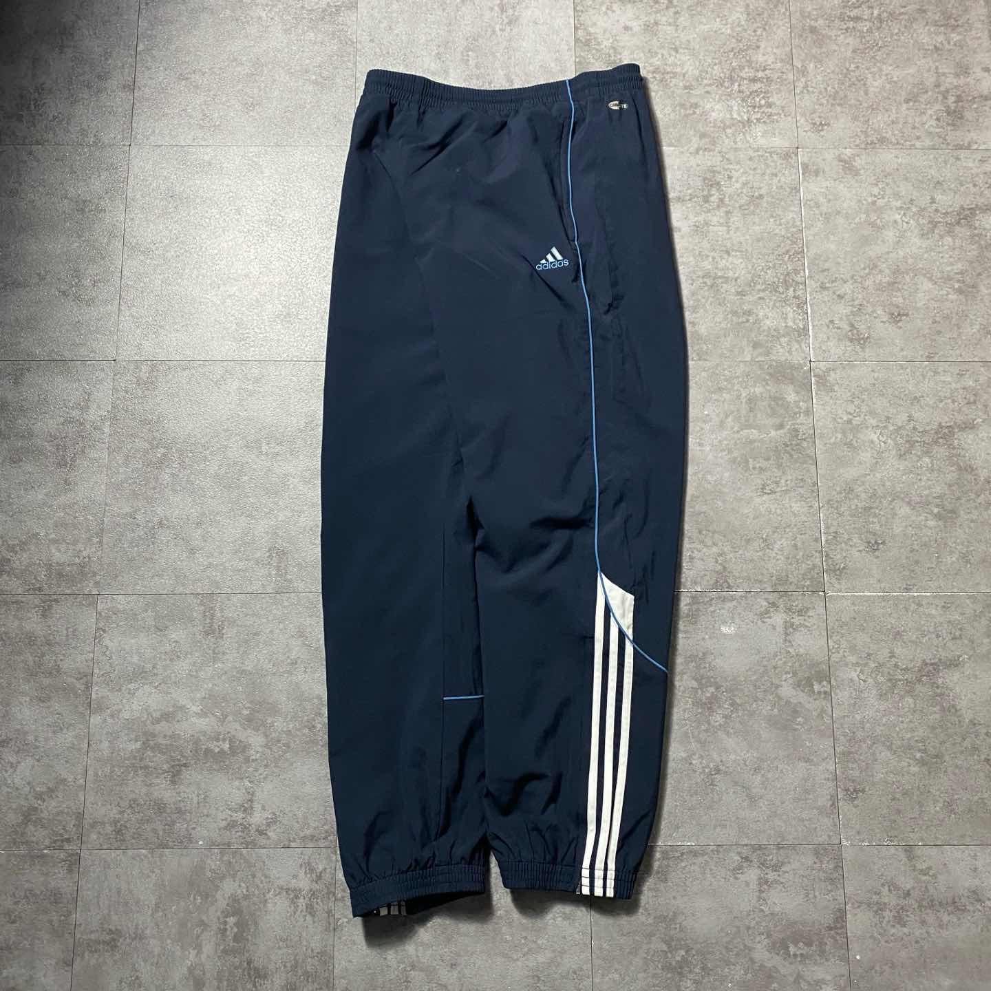 00s adidas 刺繍パフォーマンスロゴ ネイビー ナイロン トラックパンツ