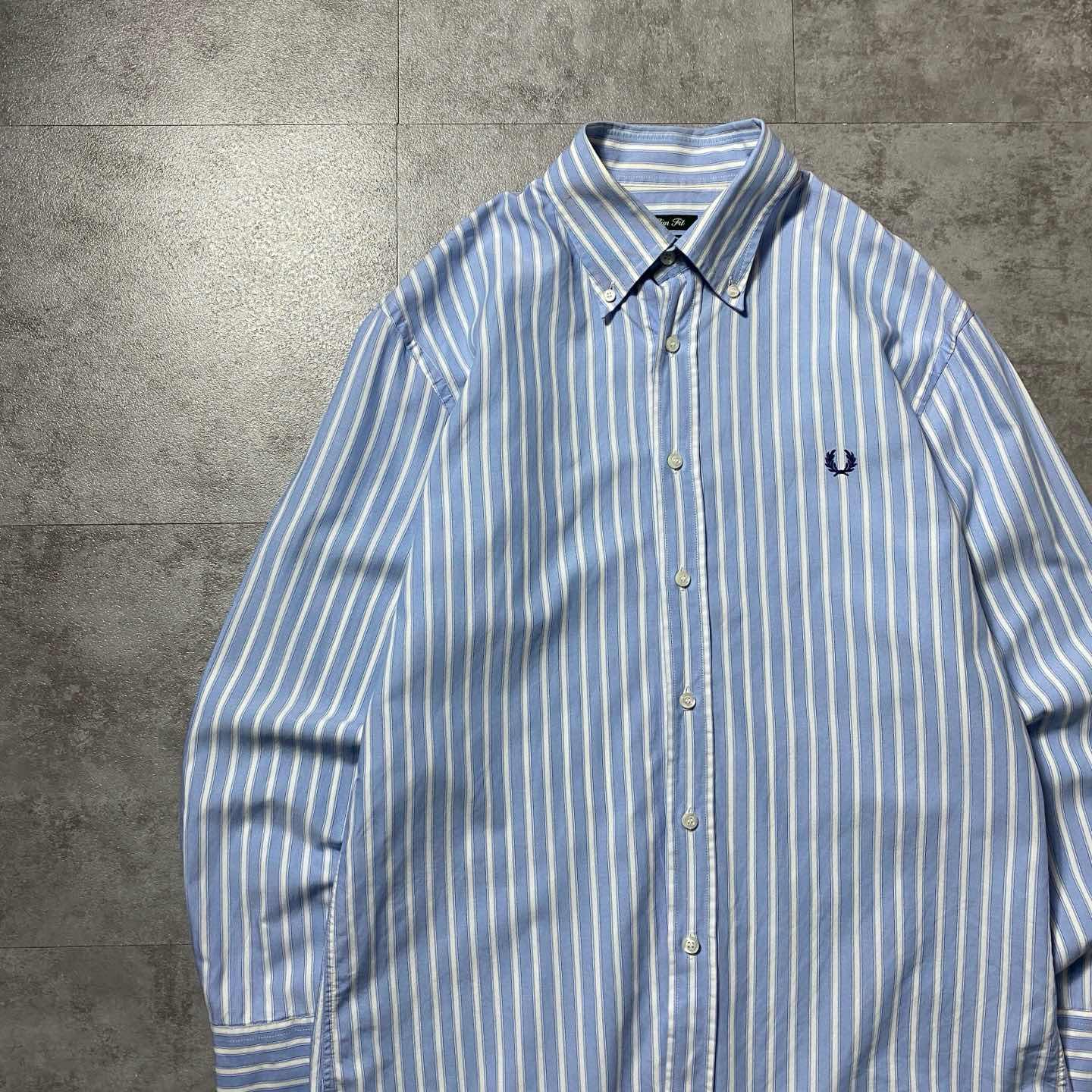 90s Fred Perry フレッドペリー 月桂樹 刺繍ロゴ ストライプ ボタンダウンシャツ