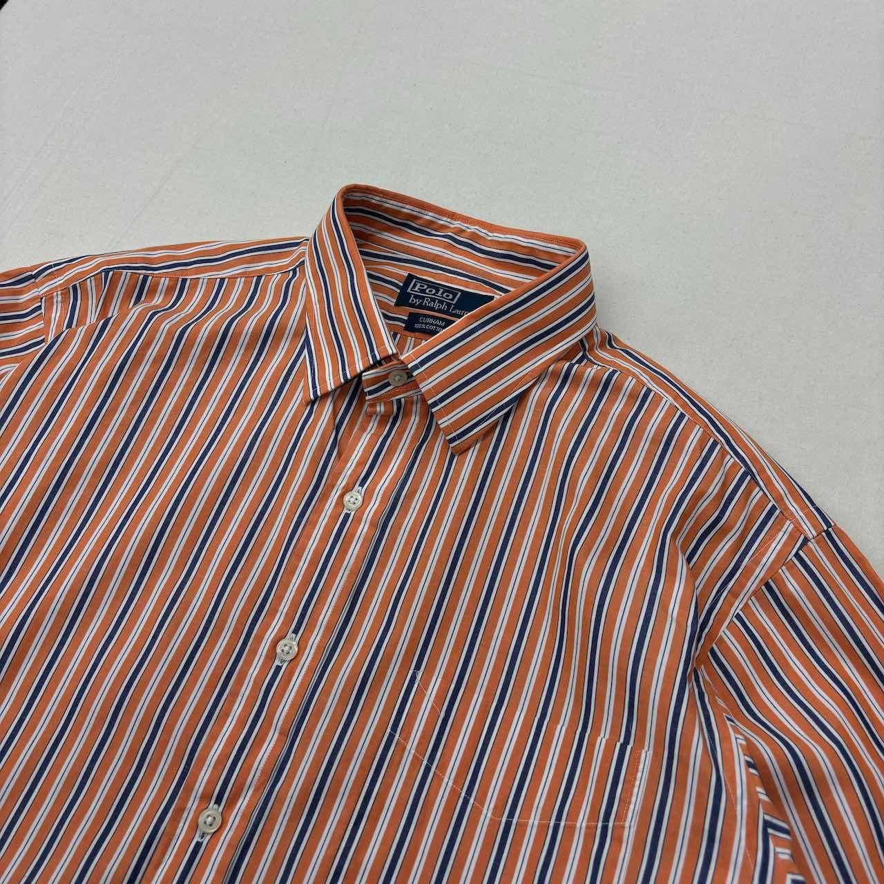 【サイズ表記】 17.5/34 (180㎝くらいがジャストサイズ) 【サイズ(cm)】 肩幅 51 袖丈 63 裄丈 90 袖口(平置) 12 腕周(平置) 31 着丈 80 身幅(脇下) 68 【商品詳細】 生産国 : インドネシア ブランド: ralph lauren カラー : オレンジ 素材 : 100%cotton 【コンディション】 B 【S】新品、展示品、デットストックなど 【A】使用感少なく、状態の良いUSED 【B】使用感あるが、目立つダメージや大きな汚れは無い。 【C】使用感と部分的にダメージや汚れ有り。 【D】使用感があり、大きなダメージや汚れ有り。 ※古着故、多少の着用感や細かい汚れがございます。古着に理解のない方のご購入はお控えいただけると幸いです。 また、撮影状況により色味に若干の差異が生じる事がございます。 【ジャンル】 US古着/US vintage 【その他】 こちらの商品は古着商品となります。 全て1点のみの在庫となります、ご注意ください。