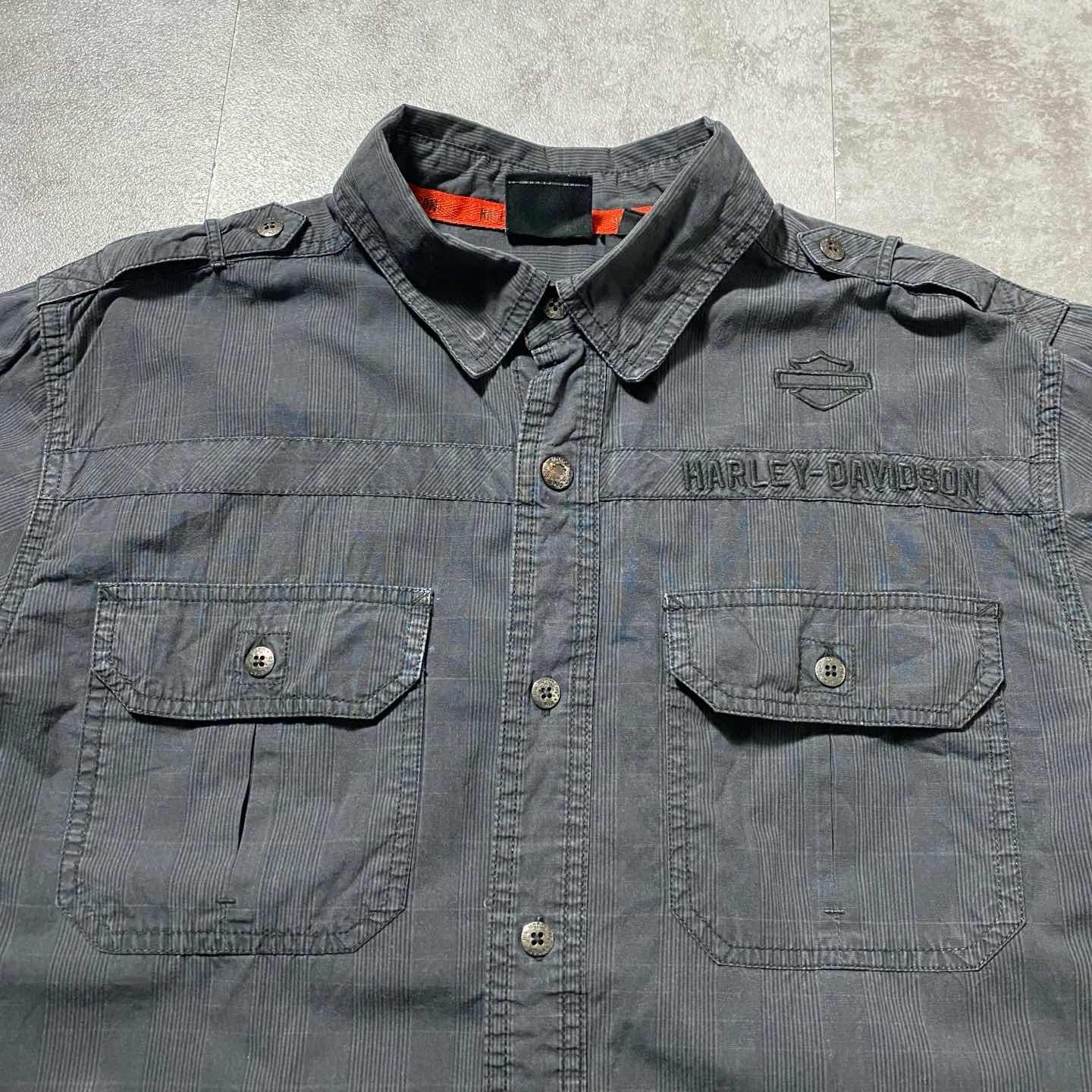 Harley-Davidson 両面刺繍 ダブルポケット バイカー ワークシャツ