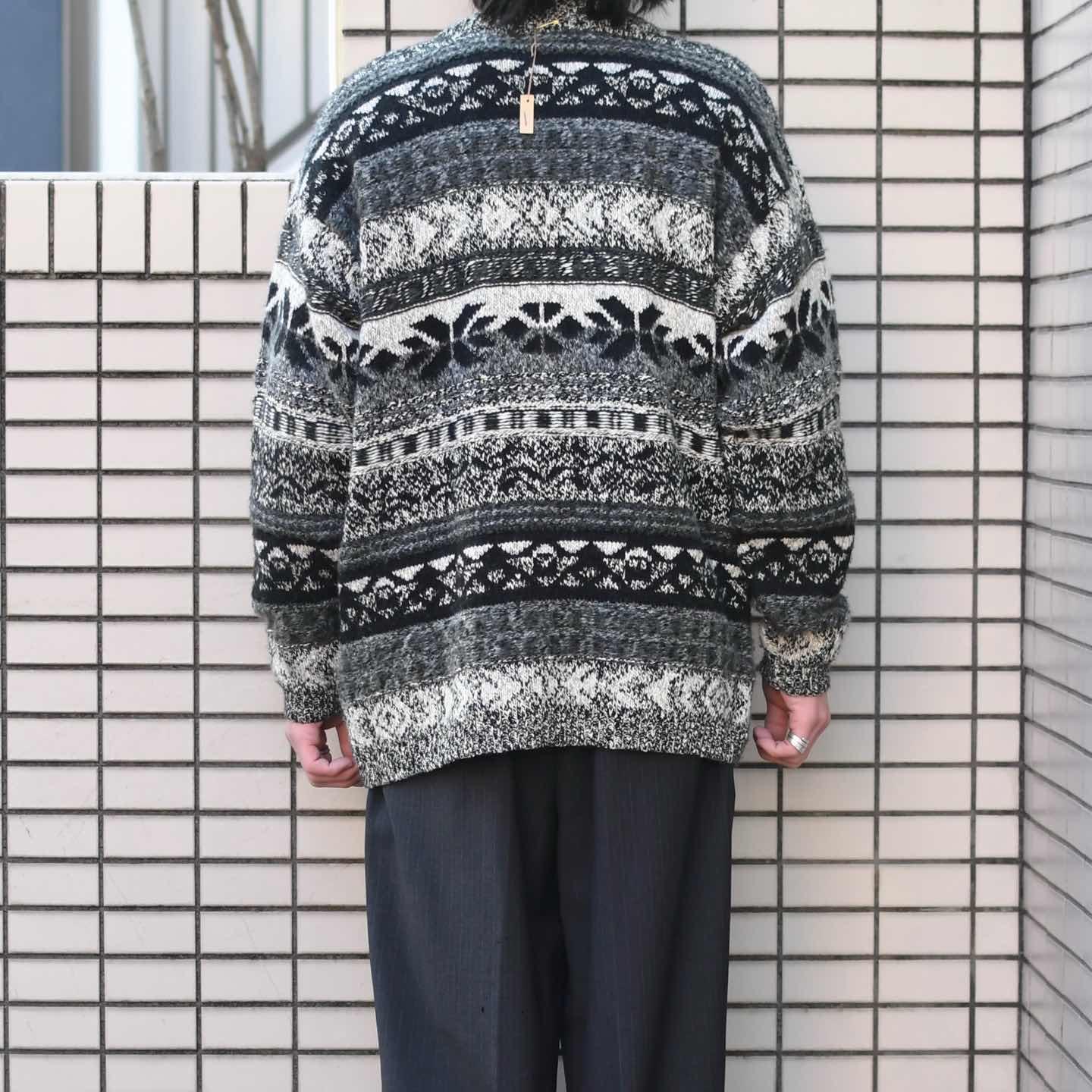 古着 モノトーン アクリル ウール カーディガンデザイン セーター