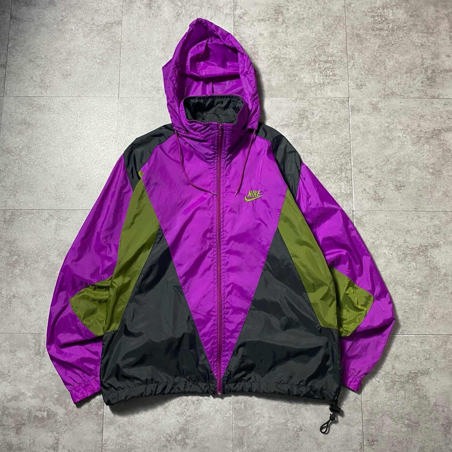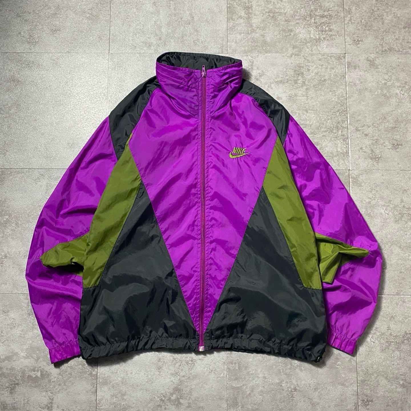 90s NIKE スウォッシュ 刺繍ロゴ クレイジーパターン ナイロンジャケット