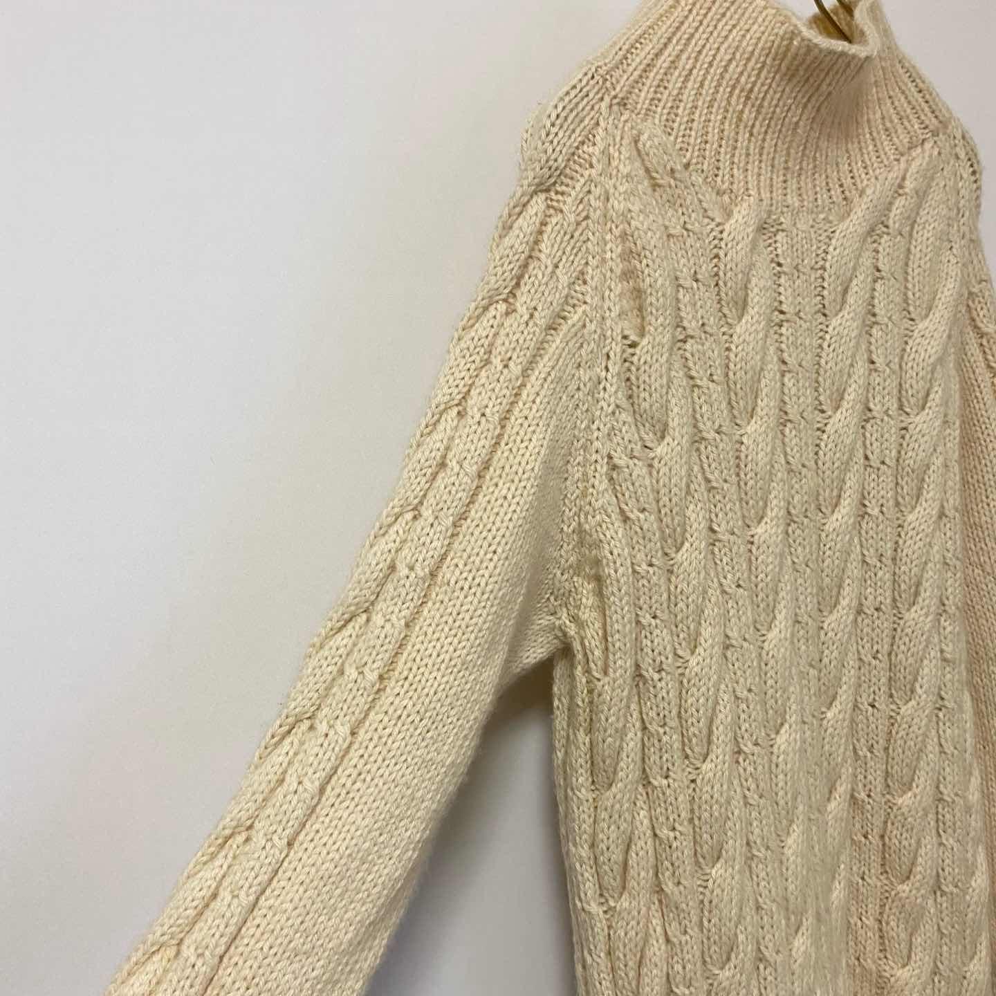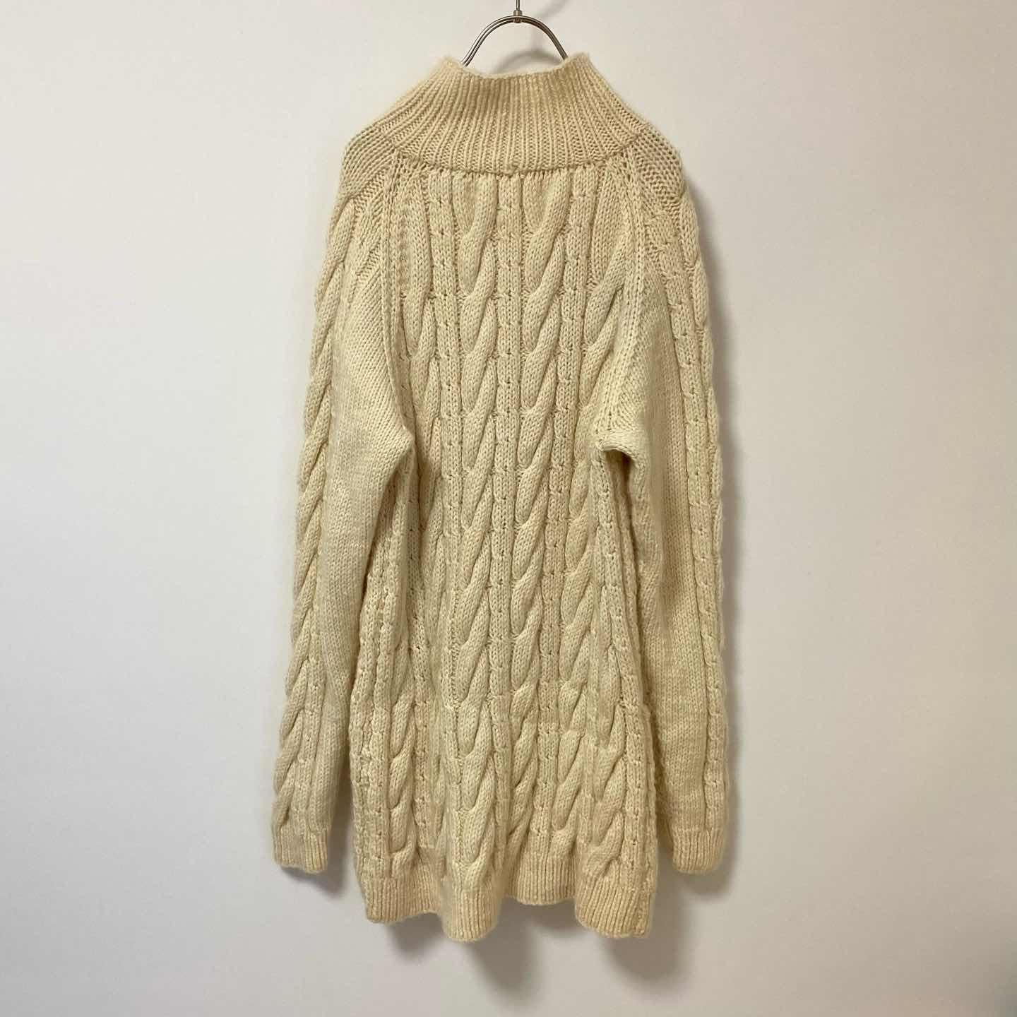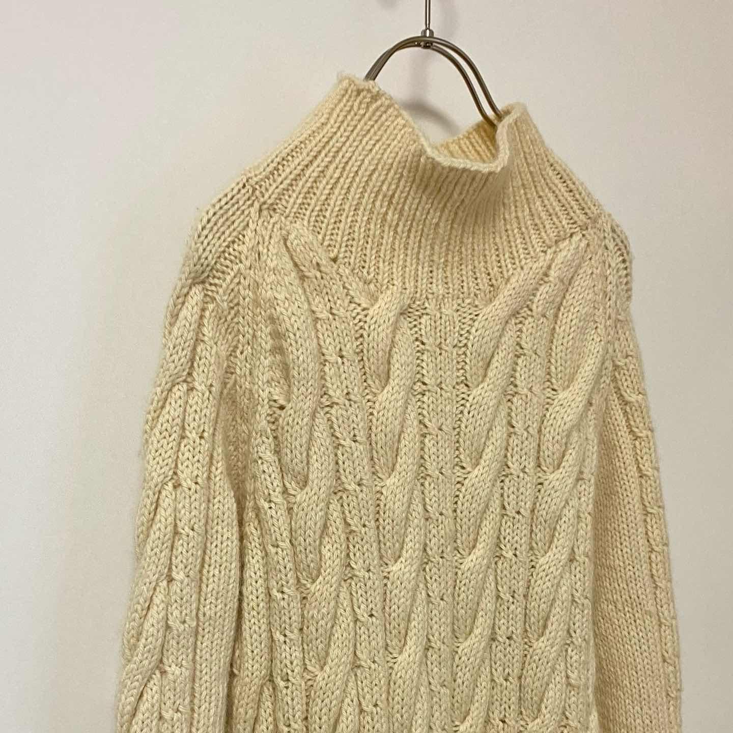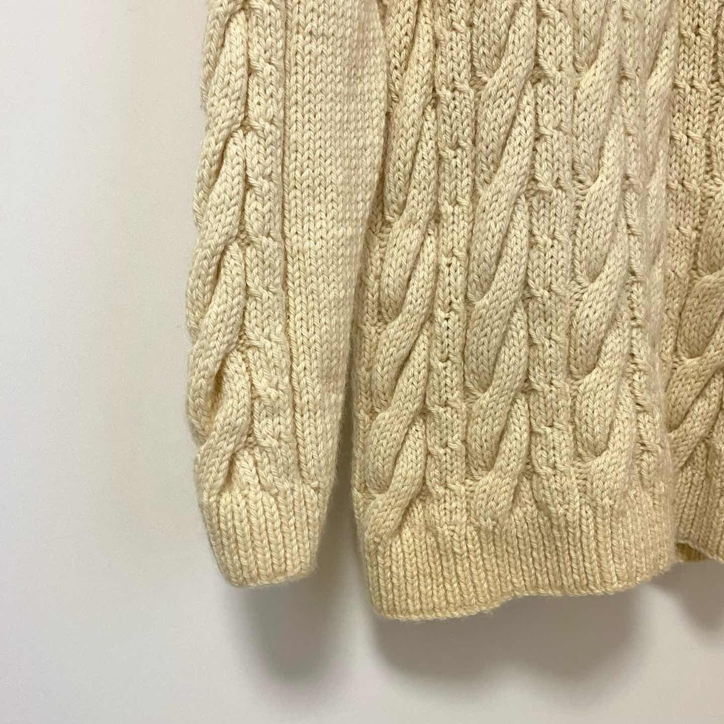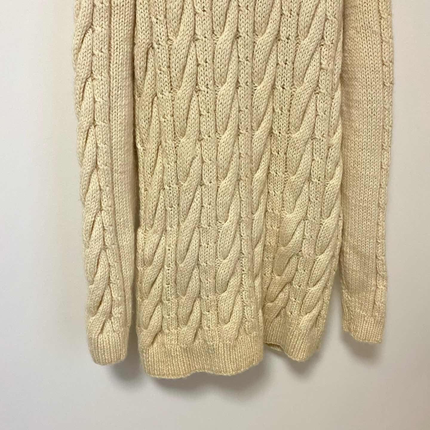 レトロなケーブル模様が素敵な手編みのUSA古着ニットセーター。暖かみのある厚手のニット素材で、ほどよくゆとりのあるキレイなシルエットです。長めの丈感でタイトなボトムスとのコーディネートにおすすめです。 □Size (着用感レディースM〜L程度) 着丈77㎝ 身幅40㎝ ゆき丈95㎝ (平置き) □タグ無しの為素材不明 □Condition【B】 目立ったダメージの無い良好な古着コンディションです。中古品であることをご理解のうえお買い求めください。ご購入前に必ずショッピングガイドのご確認をお願いいたします。 【S】未使用 【A】未使用に近い 【B】やや使用感あり 【C】使用感あり Item No.3597