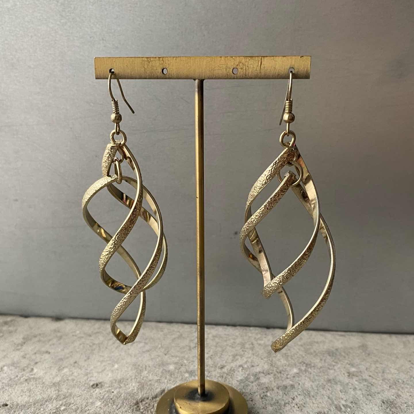 個性的なデザインが魅力的なUSAヴィンテージピアス。大ぶりなパーツが揺れ動く存在感のあるアイテムです。 □Materials メタル(ゴールドメッキ) □Size 約H8.6×W3㎝ 18g □Condition【B】 経年による変色がみられます。中古品であることをご理解のうえお買い求めください。ご購入前に必ずショッピングガイドのご確認をお願いいたします。 【S】未使用 【A】未使用に近い 【B】やや使用感あり 【C】使用感あり Item No.3596