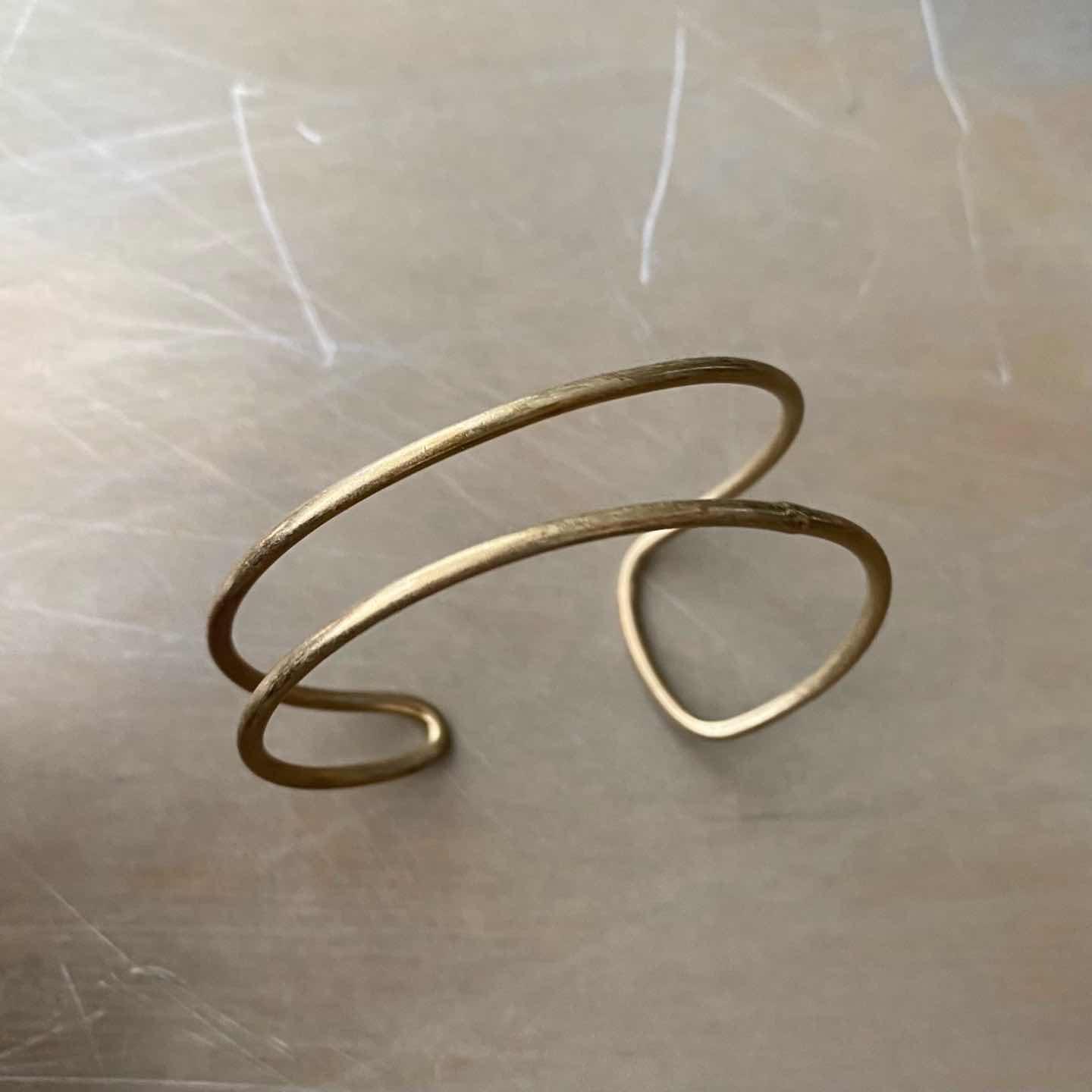 ワイヤーで作られた個性的なデザインのUSAユーズドバングル。ボリューム感がありスタイリングのアクセントにおすすめです。 □Materials メタル(メッキ) □Size 内周 約15.5㎝(開き口2.5㎝) 幅 約2.9㎝ 14g □Condition【C】 経年による変色やスレがみられます。シルバーとゴールドの間のような色味です。中古品であることをご理解のうえお買い求めください。ご購入前に必ずショッピングガイドのご確認をお願いいたします。 【S】未使用 【A】未使用に近い 【B】やや使用感あり 【C】使用感あり Item No.3599