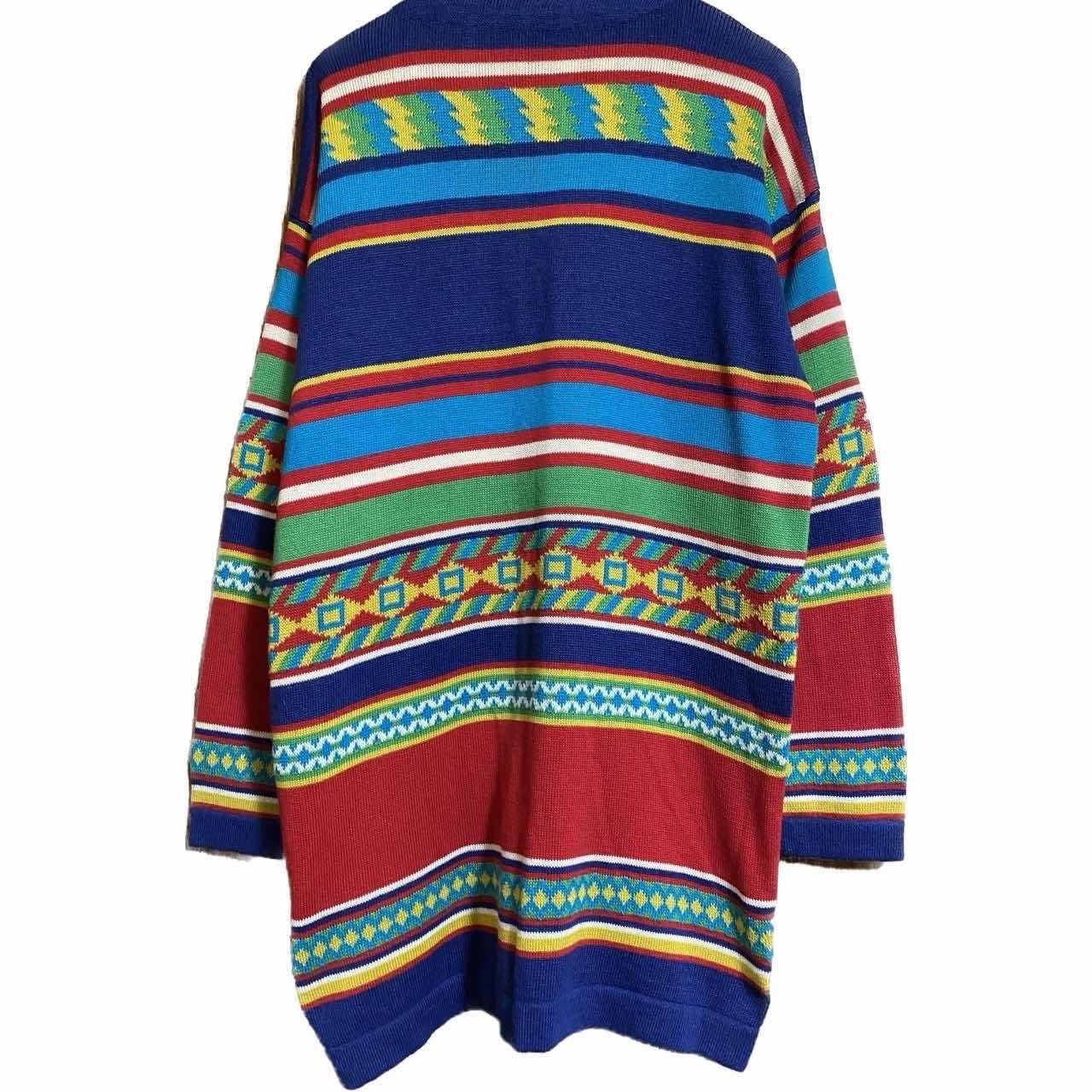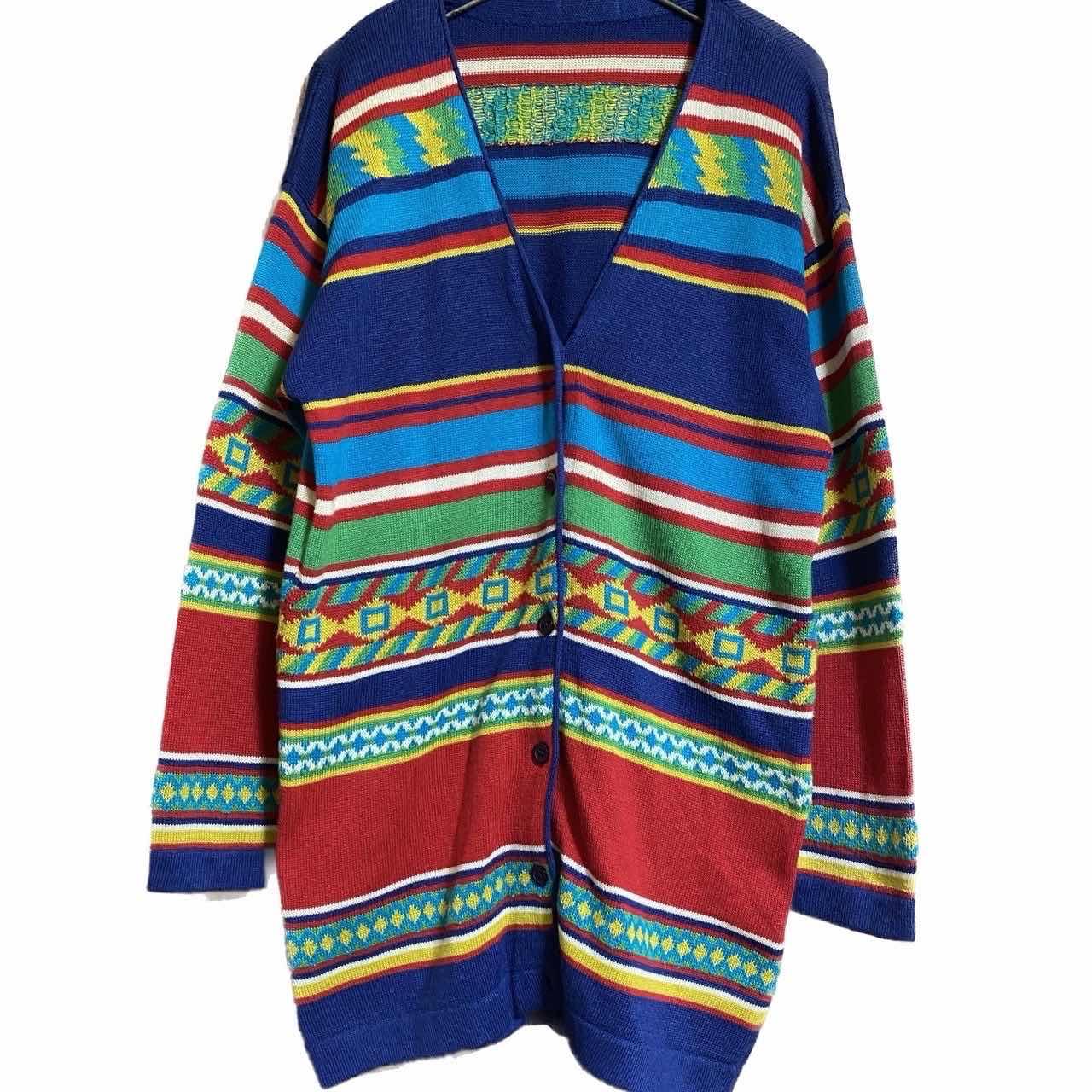 70-80s 極上美品 Mexico 特注 O.E.M サラペ柄、ネイティブカーデ 自由を求めた時代、柄物を着るのが大流行りだった。70年代後期から80年代初期流行に敏感な若者は様々な国の柄を取り入れてました。 そこに目をつけてまだ日本でははやっていなかった。メキシカンサラペをオリジナルで作成した、方々がいました、O.E.M 外部注文の中でも半端ない特注となります。 Mexico特注O.E.M オリジナルサラペの半端ない1着です。 バックの画像とか見たらわかりますよねオリジナルの柄を独特の感性で作り上げ、施さしてるんで、他の人と被る事は皆無です。 しかも奇跡と、言わんばかりの極上美品です。迷う必要したらよく解りませんし、これ系は流行に左右されないので、ガンガン値上がりするだけで判断。早い方が勝ちですね。今回はお買い求めやすく出してますので、年中活躍するコットンミックスカーディガンになりますので、 コーディネートのように、爽やかなホワイトTシャツとさらっと羽織るだけでかっこよくなるんだから、あなただけの1着かっこつけて着て見せびらかしてやってください 【カラー】 サラペ柄写真通り ▷size◁ 平置き片面採寸【㎝表記】 表記size XLまでは、行けそう、そもそもニットなんで、伸縮あるのと、コレ系は、前開け、半端閉め推奨します。 着丈/80 身幅/58ですが、ニットです、3-4は、伸縮するのと、前閉めよりは、開けてインナー見せが、確実トレンド、また、肩幅みてください^_^ 肩幅/63 DSよって。身幅あんま関係なし、 袖丈 /64DSなんで、ハンガーかけ肩落ちから採寸、 DSは袖はハンガー採寸 ※多少の誤差は理解下さい モデル170センチ 普通体型 【参考例TシャツMがジャストくらい】 私が着用して、ゆるだぼ、 【素材】 50/50コットンに、柄は、アクリル、シワならない、洗濯機丸洗い可能年中活躍 【状態】 新品同様 パーフェクト