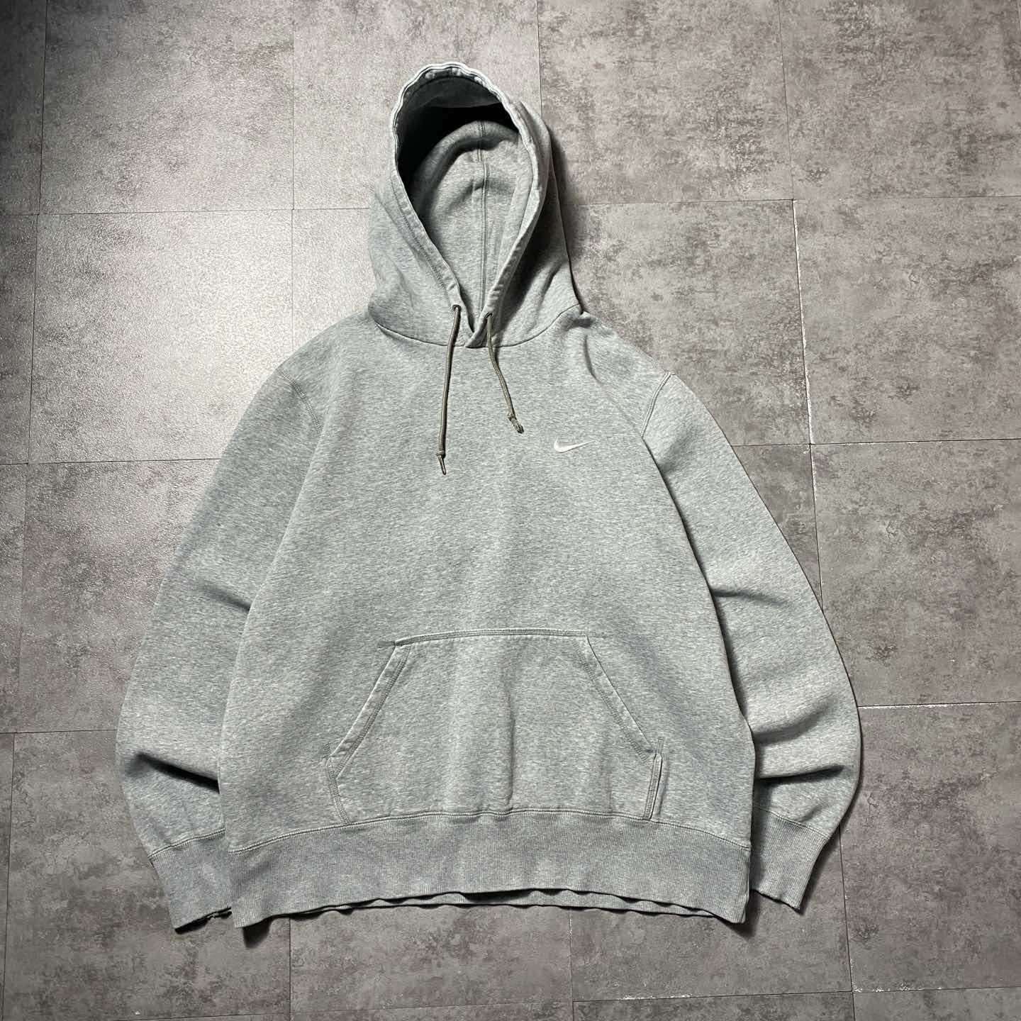 【XL】00s ナイキ スウォッシュ刺繍ワンポイント ダメージ パーカーフーディ