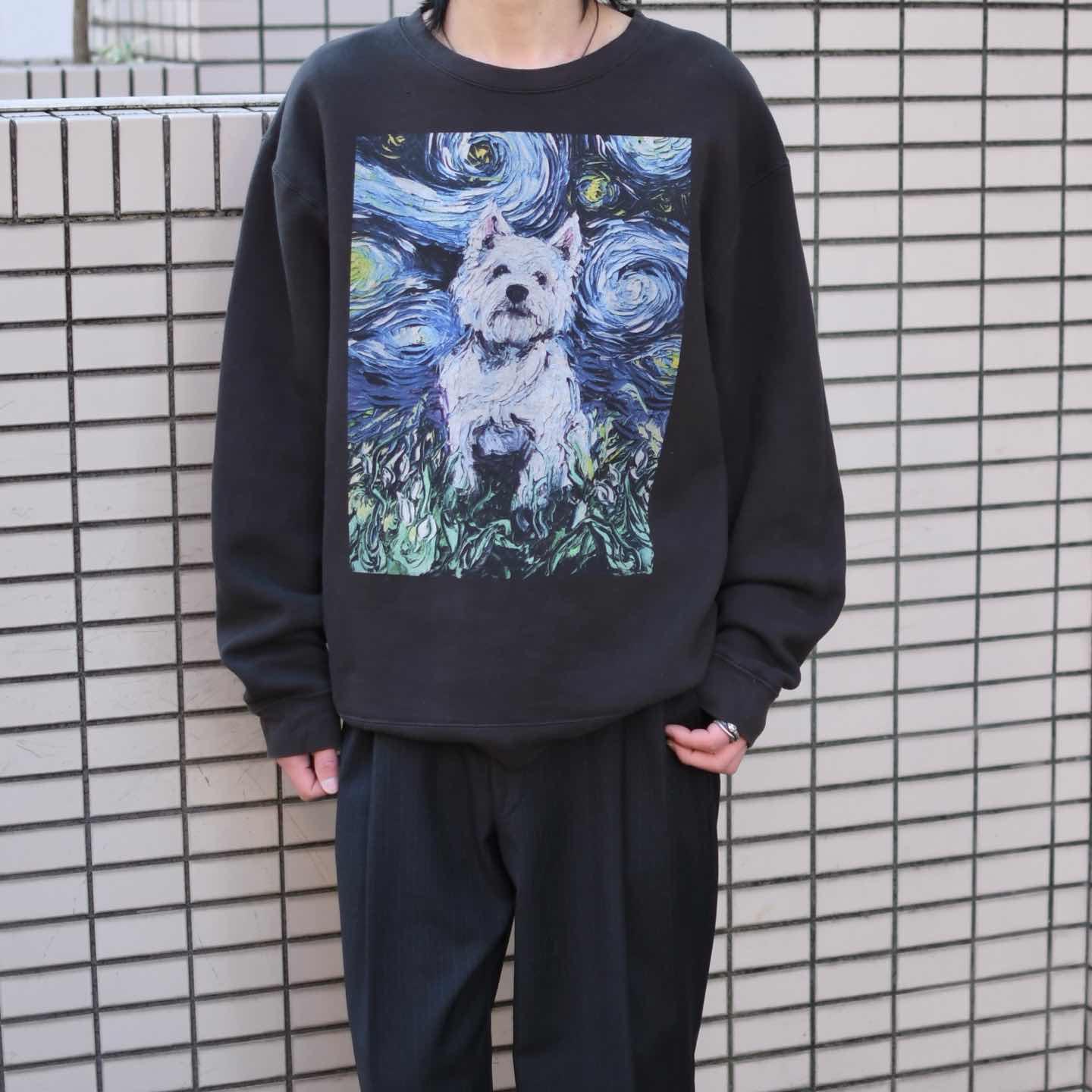 古着 ゴッホ アニマルスウェット プリントスウェット アートプリント ブラック