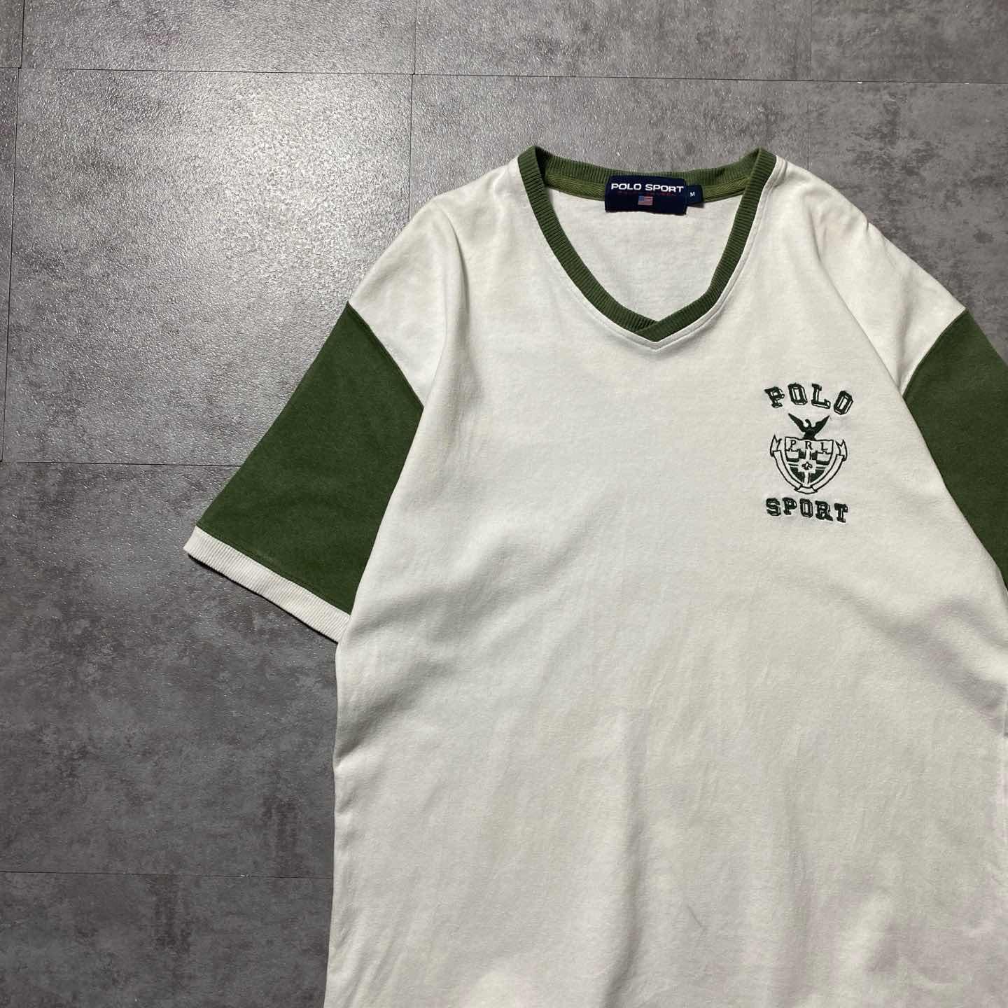 90s ラルフローレン ポロスポーツ 刺繍ロゴ Vネック ヘビーオンス Tシャツ