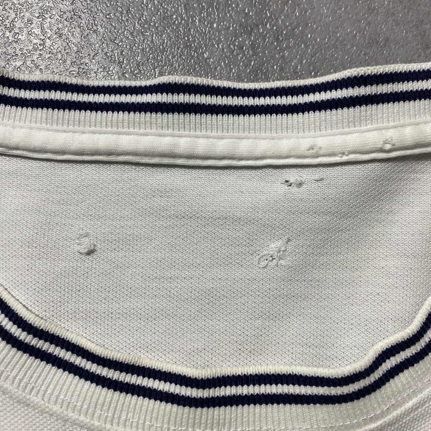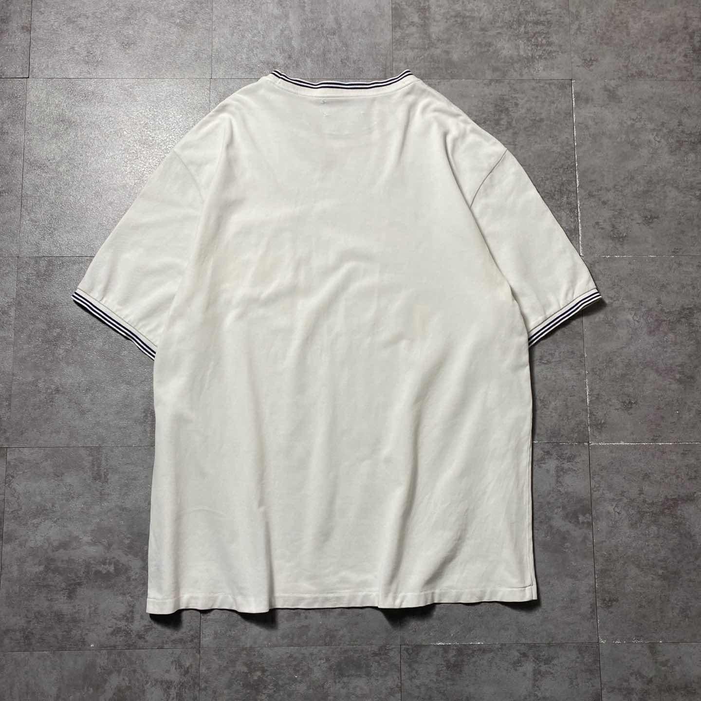 ○Size○ 表記→サイズ表記タグ欠損のため不明(着用感XLサイズ相当) ・着丈76 ・身幅64 ・肩幅57 ・袖丈26 (cm) ○Color○ ・ホワイト ○Material○ ・素材表記タグ欠損のため不明(おそらく100%コットン) ○Condition○ ・首元タグ欠損 ・タグ欠損跡辺りにほつれあり ・両脇薄ら黄ばみあり ○Caution○ 当店で取り扱っている商材は全て『古着』となっております。 そのため、多少の状態難(ほつれ、傷、汚れ、リブの伸び、使用感、擦れ、色あせ、etc)がある場合がございます。 新品同様の完璧なお品物をお求めの方は当店でのお買い物を控えて頂きますよう宜しくお願いします。 また、購入された商品に関しましては、購入日時から起算して『72時間以内に』発送手続きの方を取らせて頂きます。 お急ぎの場合は購入前に当店オンラインストアの方にお問い合わせ頂きますよう宜しくお願いします。 26/563