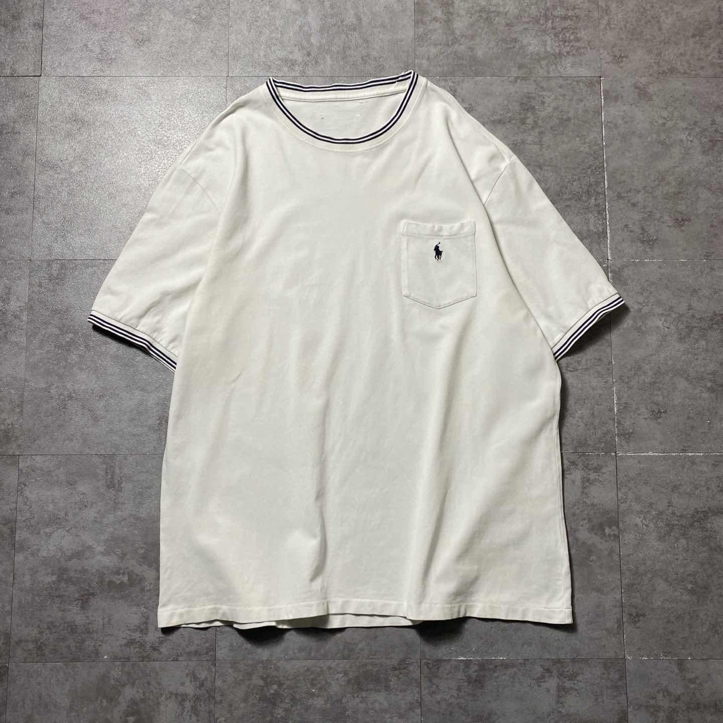 ラルフローレン 刺繍ワンポイント ポニー 胸ポケット ラインリブ Tシャツ