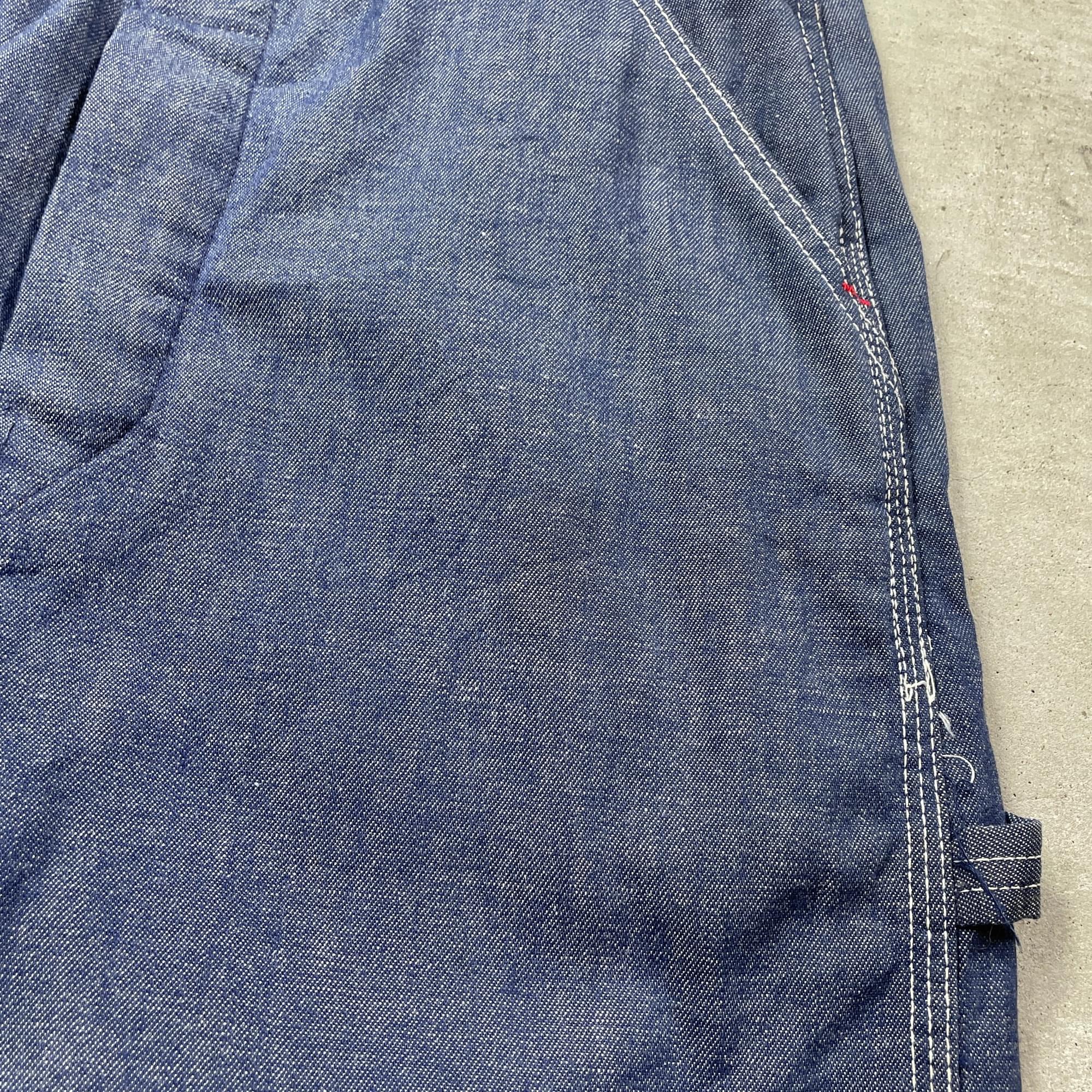 ■60~70年代 unknown オーバーオール デニム地 メンズW30相当 古着 60s 70s ヴィンテージ VINTAGE アメカジ デニム ワークウェア【オーバーオール】/ブルー 【ブランド】不明 【サイズ】表記不明(実寸30×31相当) ※計測値をご確認ください。 総丈(肩から裾)…149.5(写真の状態の長さです。調節も可能になっています。) ウエスト…(平置き計測?2)…76 ワタリ幅…33.5 股下…79 裾幅…26 【生産国】不明 【素材】不明(おそらくコットンかと思われます。) 【状態】正面ポケット付近に多少の汚れが御座います。 画像にてご確認ください。 【c250128103】 ※古着は洗濯、検品などのケアを行っております。(新品・デッドストックは洗濯していません。) ※モニターの発色により実物と異なる場合がございます。予めご了承ください。 ※ 海外直輸入USED品になります。