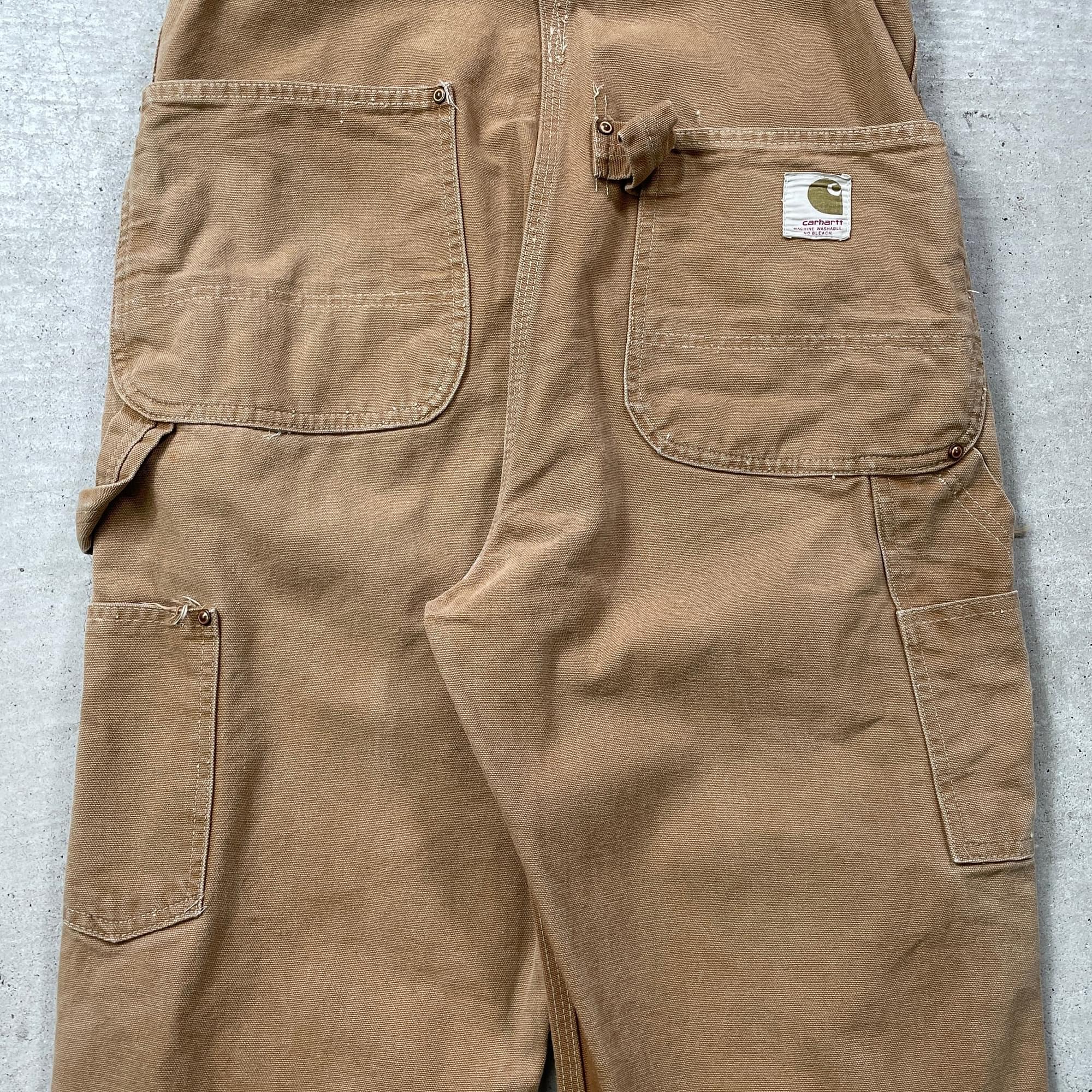 ■60年代 Carhartt カーハート ダック地 オーバーオール ダブルニー メンズW32相当 古着 60s VINTAGE ヴィンテージ ボタンフライ 山ポケ キャメル【オーバーオール】/ベージュ 【ブランド】Carhartt カーハート 【サイズ】表記 不明(実寸32×27相当) ※計測値をご確認ください。 総丈(肩から裾)…140(写真の状態の長さです。調節も可能になっています。) ウエスト…(平置き計測?2)…83 ワタリ幅…32.5 股下…68 裾幅…24 【生産国】不明(おそらくUSA製かと思われます。) 【素材】不明(おそらくコットンかと思われます。) 【状態】 全体的に汚れやダメージ、色あせ等のヴィンテージワークウェアらしい使用感がございます。 画像にてご確認ください。 【c250128102】 ※古着は洗濯、検品などのケアを行っております。(新品・デッドストックは洗濯していません。) ※モニターの発色により実物と異なる場合がございます。予めご了承ください。 ※ 海外直輸入USED品になります。